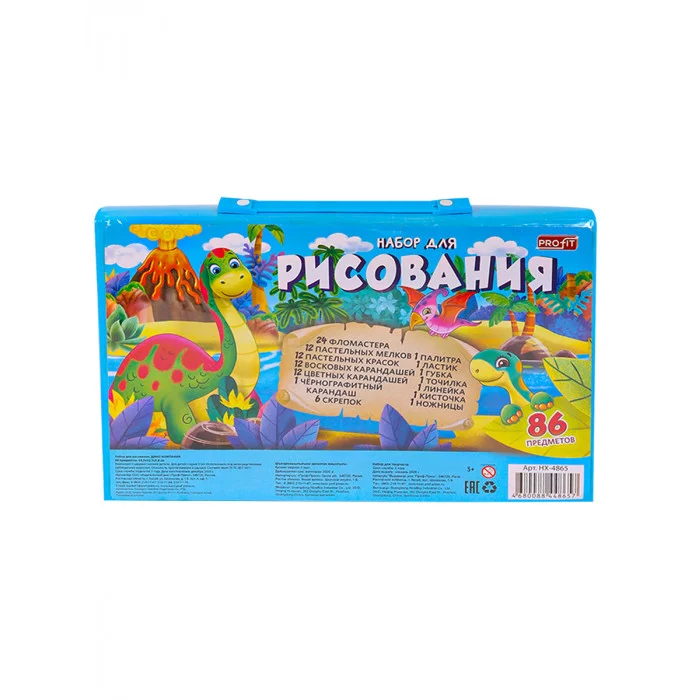 Набор для рисования "ДИНО КОМПАНИЯ" (НХ-4865), 86 предметов, пласт. кейс ТМ "Profit" НХ-4865