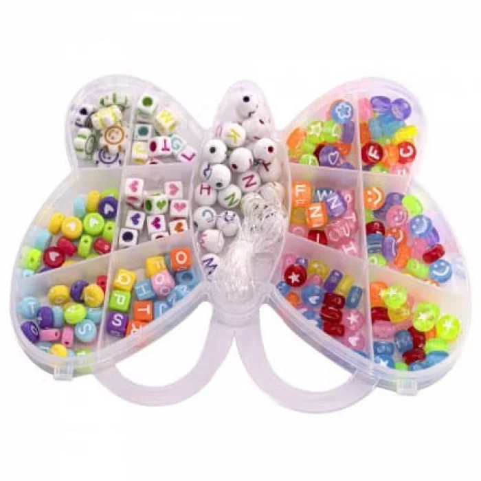 Набор для создания украшений-бусины Alingar, 140х110х20 мм, "Бабочка мини", 13 видов бусин, 1х2, 1 м леска, пластик.пенал AL11571