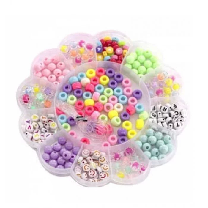 Набор для создания украшений-бусины Alingar, 155х155х18 мм, "Цветочек", 9 видов бусин, 1х2,1 м леска, пластик.пенал AL11573