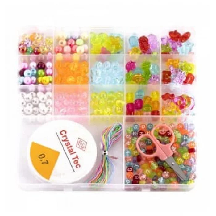 Набор для создания украшений-бусины Alingar, 170х165х18мм, "Crystal clear", 8 вид.бус., подвес., ножницы, 1х7м леска, 1х2м нить, пластик.пенал AL11550