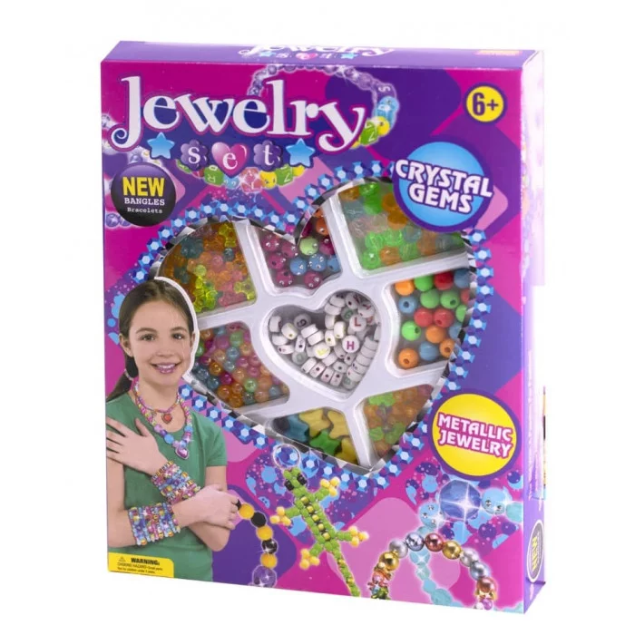 Набор для создания украшений-бусины Alingar, 220х170х30мм, "Crystal gems", 8вид. бус., 1х3 м резинка, карт. уп. AL11554