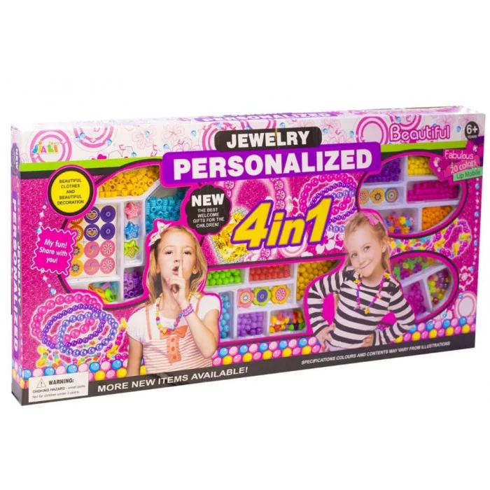 Набор для создания украшений-бусины Alingar, 610х295х40мм, "Jewelry personalized", 12 вид. бус., 2х0,6 м резинка, наклейки, карт. уп. AL10608