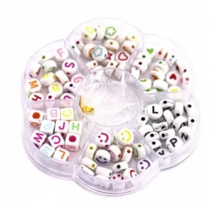 Набор для создания украшений-бусины Alingar, 80х80х12 мм, "Буковки", 6 видов бусин, 1х1,1 м леска, пластик. пенал AL11565