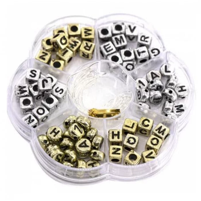 Набор для создания украшений-бусины Alingar, 80х80х12 мм, "Золото-серебро", 2 вида бусин, 1х1,1 м леска, пластик.пенал AL11568