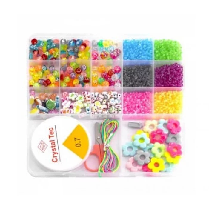 Набор для создания украшений-бусины и бисер Alingar, 170х165х18мм, "Shiny Beads", 9 вид.бус., бисер, 1х7м леска, 1х2м нить, пластик.пенал с европод AL11547