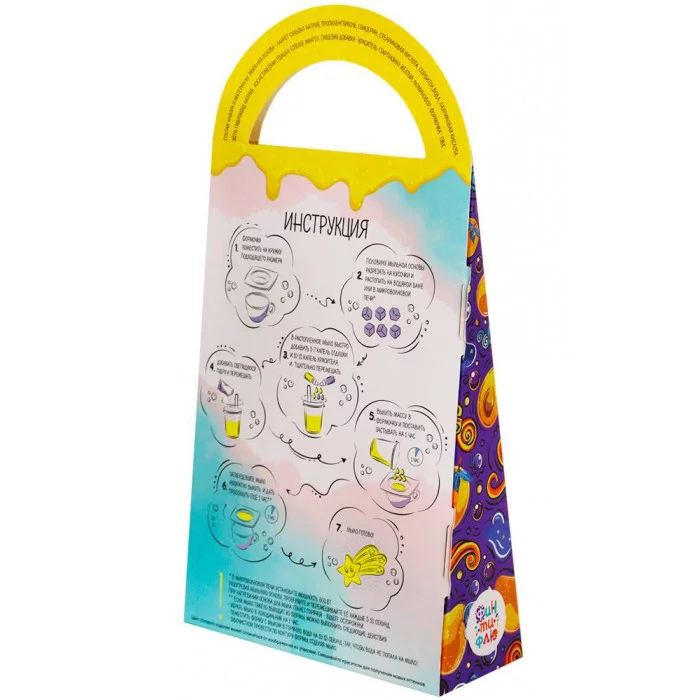 Комплектация: мыльная основа - 1 шт., ароматизатор - 1 шт., пищевой краситель - 1 шт., пластиковая формочка - 1 шт.; светящаяся пудра -1 шт.