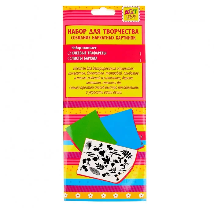 Набор для творчества трафареты 3 вида + бархатная бумага листа "Цветы" 187789