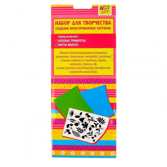 Набор для творчества трафареты 3 вида + фольга 5 листов "Цветы" 187781