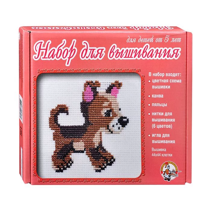 Набор для вышивания крестиком "Щенок". Занятие рукоделием развивает моторику рук, усидчивость и аккуратность.Размер вышивки - 44х44 клетки.