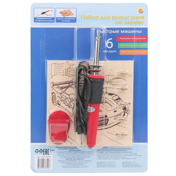 НАБОР ДЛЯ ВЫЖИГАНИЯ ПО ДЕРЕВУ 2 плашки 15х15 см (в блистере). БЫСТРЫЕ МАШИНЫ (Арт. НР-6690)