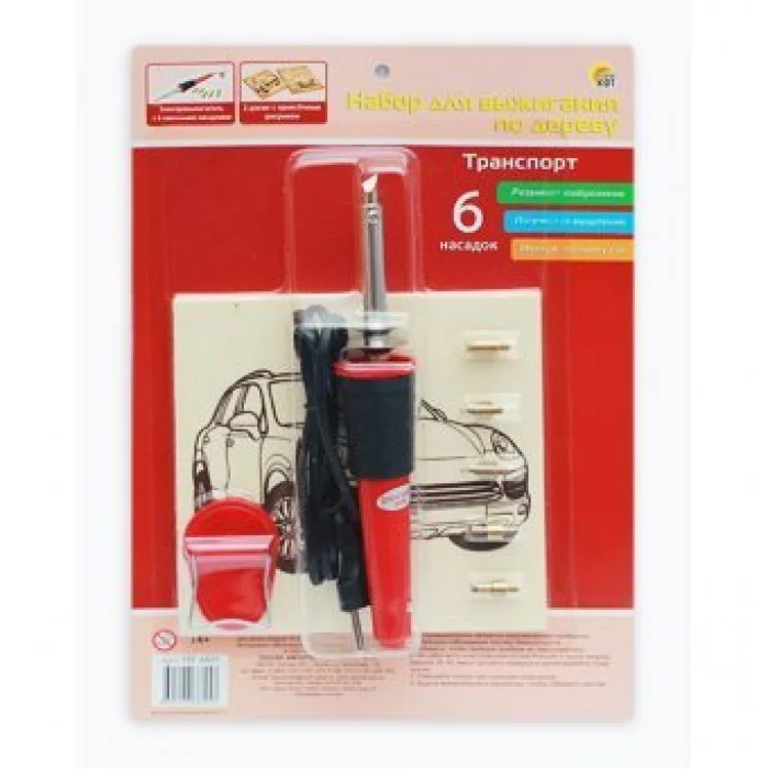 Познакомьте Вашего ребёнка с техникой выжигания по дереву! Данная серия содержит все необходимое для новичка, просто выберете набор по вкусу и немного помогите маленькому художнику создать свой шедевр. Несмотря на доступность и простоту, занятие этим древнейшим искусством поможет раскрыть творческий потенциал, а также развить воображение и художественные навыки. Процесс выжигания довольно прост - накалите электровыжигатель до необходимой температуры и медленно ведите по контуру рисунка, используя для удобства различные насадки, входящие в состав набора.