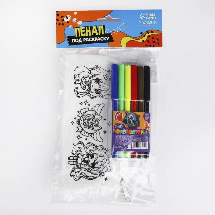 Набор пенал под раскраску "Аниме", фломастеры 6 цветов 10265204