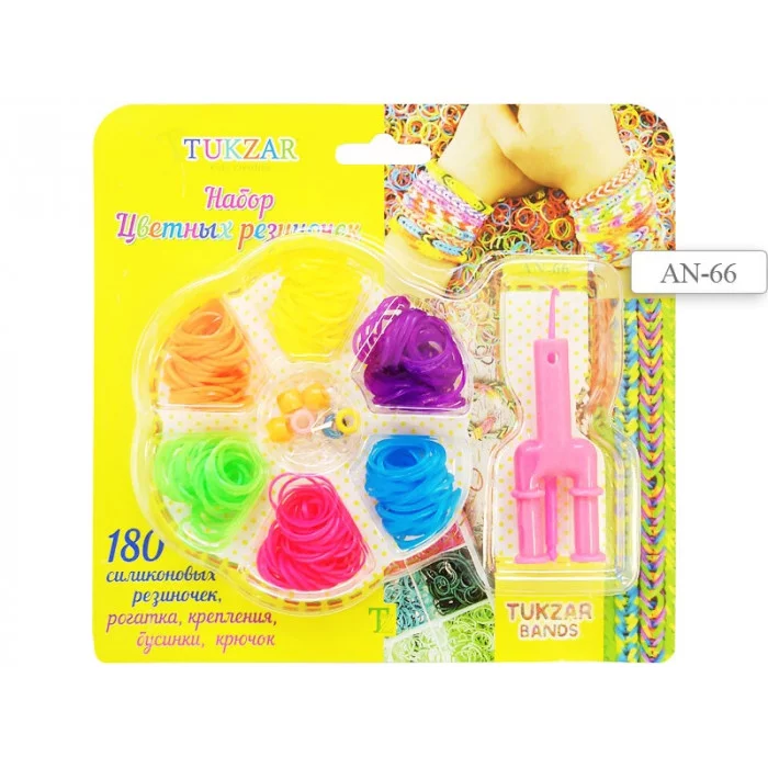 Набор цветных резиночек для детского творчества ЦВЕТОК, с рогаткой, в блистере, 180 шт. AN-66
