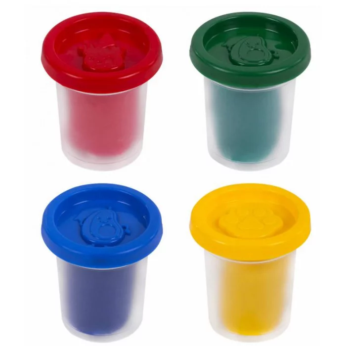 Пластилин-тесто для лепки BRAUBERG KIDS, 4 цвета, 200 г, яркие классические цвета, крышки-штампики, 106714