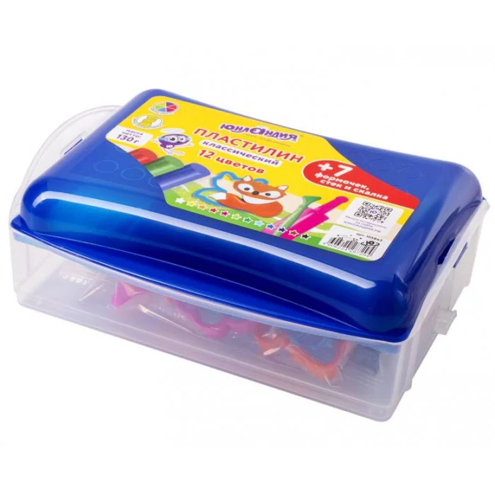Пластилин в боксе ЮНЛАНДИЯ "ЮНЛАНДИК В ЗООПАРКЕ", 12 цветов, 130 г, скалка, стек, 7 формочек, 105863