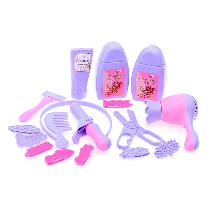 Игровой набор позволит ребенку почувствовать себя настоящим мастером в салоне красоты. Пользуясь аксессуарами из набора, ребёнок может делать причёски куклам и другим игрушечным посетителям своего мини-салона. Игра с таким набором развивает в ребенке сюжетно-ролевое мышление, воображение и мелкую моторику(расческа, ножницы, плойка, бритвенный станок, фен, ободок, заколка 8шт, бальзам для волос, шампунь, крем)