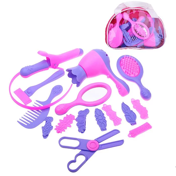 Игровой набор позволит ребенку почувствовать себя настоящим мастером в салоне красоты. Пользуясь аксессуарами из набора, ребёнок может делать причёски куклам и другим игрушечным посетителям своего мини-салона. Игра с таким набором развивает в ребенке сюжетно-ролевое мышление, воображение и мелкую моторику(расческа, ножницы, плойка, бритвенный станок, фен, ободок, заколка 8шт, массажная расческа, зеркало)
