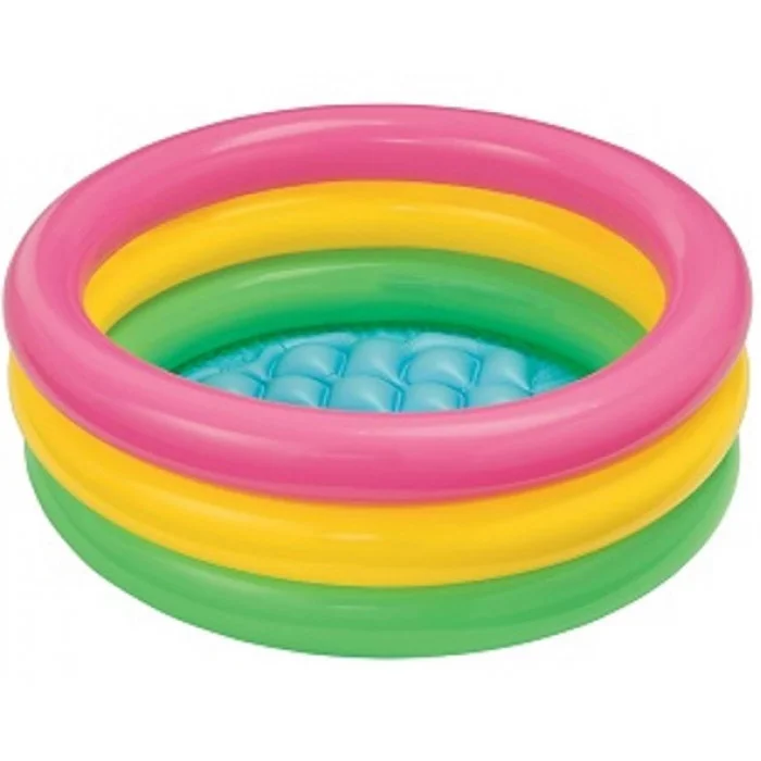 Яркий и разноцветный надувной бассейн «Радуга» INTEX, состоящий из трех надувных колец, предназначен для малышей до 3 лет. Надувное дно и мягкие, невысокие бортики высотой 15 см обеспечивают полную безопасность ребенка. Материал надувного бассейна не скользит и не вызывает аллергии. Характеристики: Размер упаковки- 16,5*14,5*5,5 см Размеры, см: 61х22 Объем, л (80% наполнения): 35 Высота бортика, см: 15 Надувное дно: есть Сливной клапан: нет
