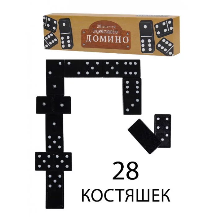 Домино — всемирно известная и любимая настольная игра для взрослых и детей. Игра увлекательна и полезна для мыслительной деятельности: чтобы выиграть, придётся проявить стратегические способности. Материал фишек: пластик.