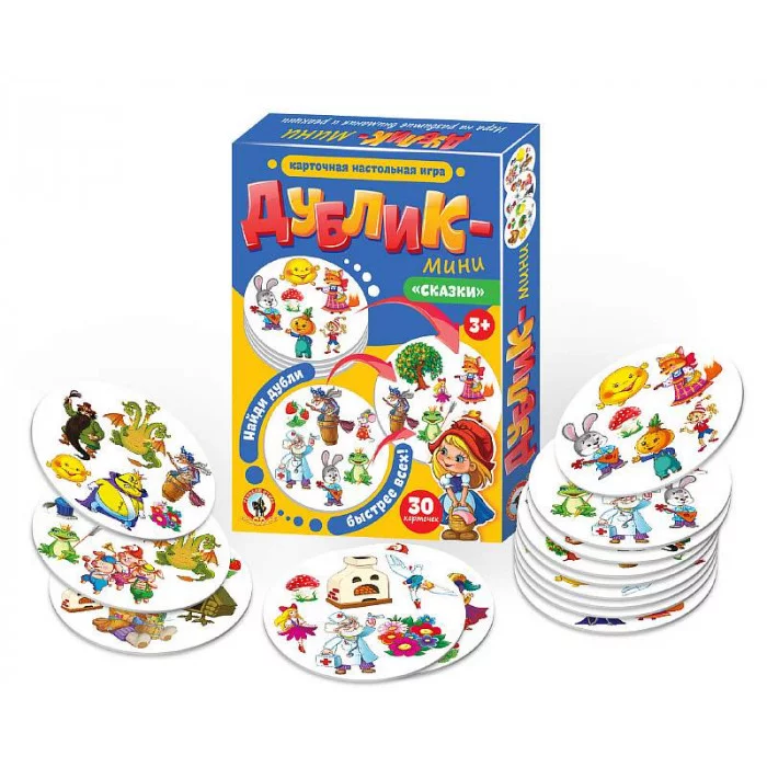 «Дублик» – это игра, которая сможет развеселить и увлечь каждого! В комплекте карточки с разным набором картинок. Игрокам необходимо найти совпадающие изображения быстрее всех. В процессе игры дети узнают сказочных героев и вспомнят сказки с их участием. В правилах описаны несколько вариантов игры. Память, скорость и внимание – Ваши главные помощники. Вперёд за победой! Игра подойдет для 2-4 игроков.