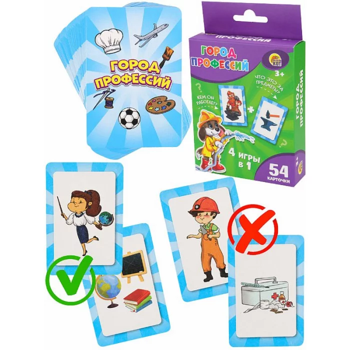 «Город профессий» - это не одна игра, а целых четыре, каждая из которых не только научит ребят, как называются те или иные профессии и какими инструментами пользуются их представители, но и разовьёт логику, реакцию и ассоциативное мышление.