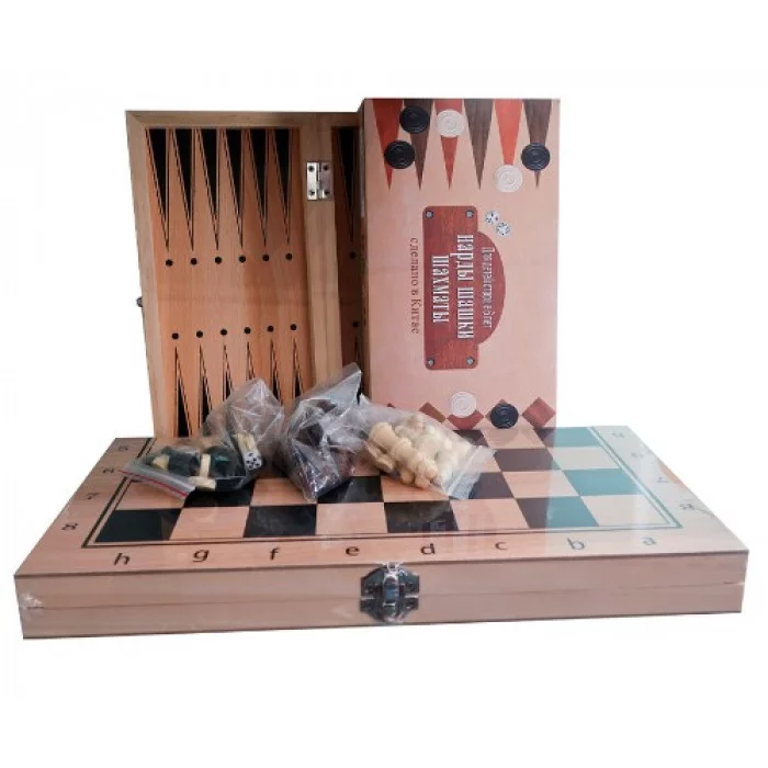Набор настольных игр поможет приятно провести время и потренировать мозг. Нарды, шахматы и шашки благоприятно сказываются на развитии детей и взрослых. А секрет популярности этих настольных игр заключается в гениальной простоте их правил и огромных возможностях комбинаций. Проводите досуг с пользой! Размеры фигур: король 6,4x2 см, пешка 3x1,6 см. Размер поля: 34х17х3,5 см.