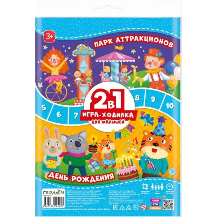 Игра-ходилка с фишками для малышей 2в1. День рождения + Парк аттракционов. 42х29,7 см. ГЕОДОМ