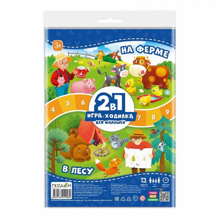 Игра-ходилка с фишками для малышей 2в1. На ферме+В лесу. 42х29, 7 см. ГЕОДОМ, изд.: Гео-дом