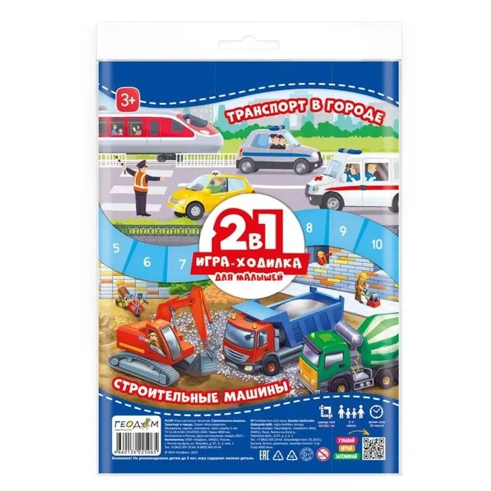 Игра-ходилка с фишками для малышей 2в1. Строительные машины+ Транспорт в городе. 42х29, 7 см. ГЕОДОМ
