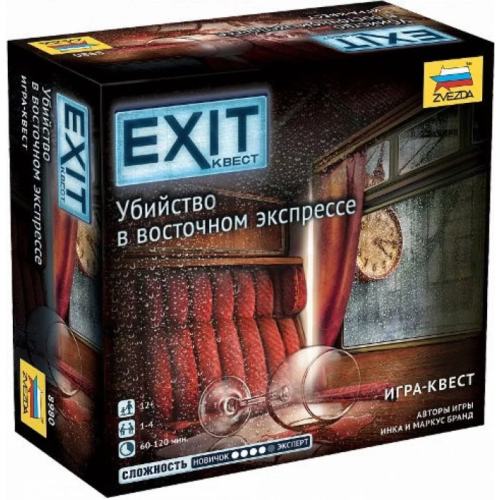 Один убийца, восемь подозреваемых. К счастью, в этом поезде ехал всем известный детектив Ахиллес Пуссо, хотя сейчас он без сознания. Сможете ли вы, используя записи детектива, раскрыть это дело до того как поезд доедет до Константинополя? Игры серии EXIT-КВЕСТ основаны на так называемых Эскейп-квестах (приключенческих играх, проходящих в реальности), популярном жанре развлечения во всем мире. Перед игроками стоит задача - попытаться выпутаться из опасной ситуации. Серия игр-квестов постоянно пополняется новинками. И в каждой коробке вас ждет новая история и новый мир загадок. Состав настольной игры: 1 Диск декодер 86 Игровых карточек 2 Странных предмета 1 Книжка 1 Правила игры 3 Закрытых листа купе