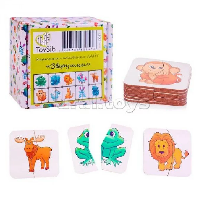 Задача ребенка - соединить половинки так, чтобы получились целые картинки с изображением животных.