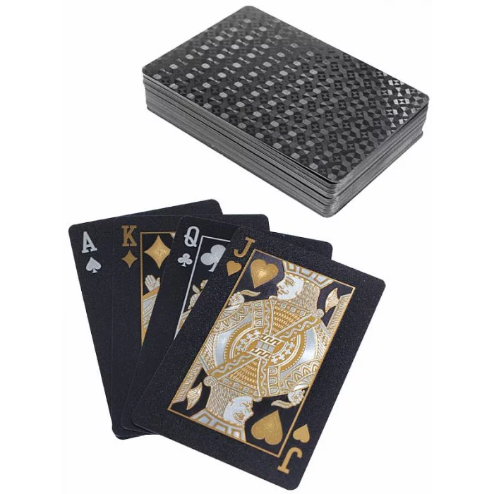 Карты игральные в чёрном дизайне станут хорошим подарком поклонникам карточных игр и пасьянсов. Помимо эффектного внешнего вида, карты отличаются надёжностью и долговечностью. Они выдерживают регулярные игры, не рвутся, не стираются.