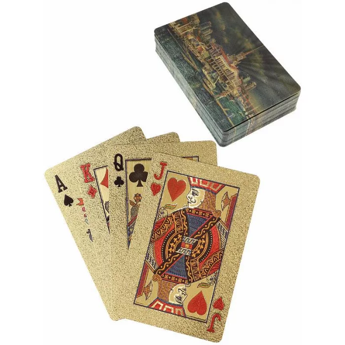 Карты игральные пластиковые "Набережная", (54 шт), золотистые, 57х88мм (собст. разр.) ИН-2901