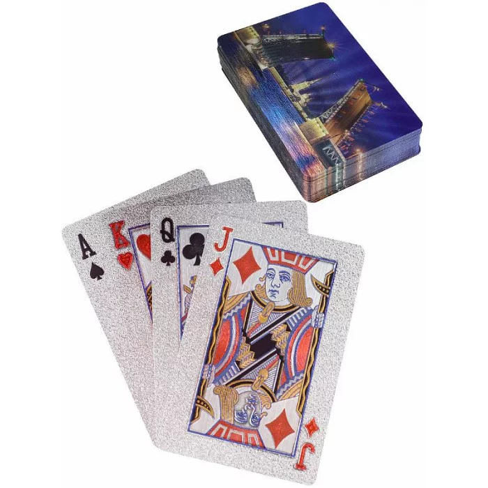 Карты игральные пластиковые "Разводные мосты", (54 шт), серебристые, 57х88мм (собст. разр.) ИН-2898