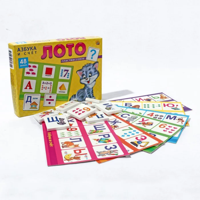 ЛОТО ПЛАСТИКОВОЕ 48 фишек. АЗБУКА И СЧЕТ ИН-8084