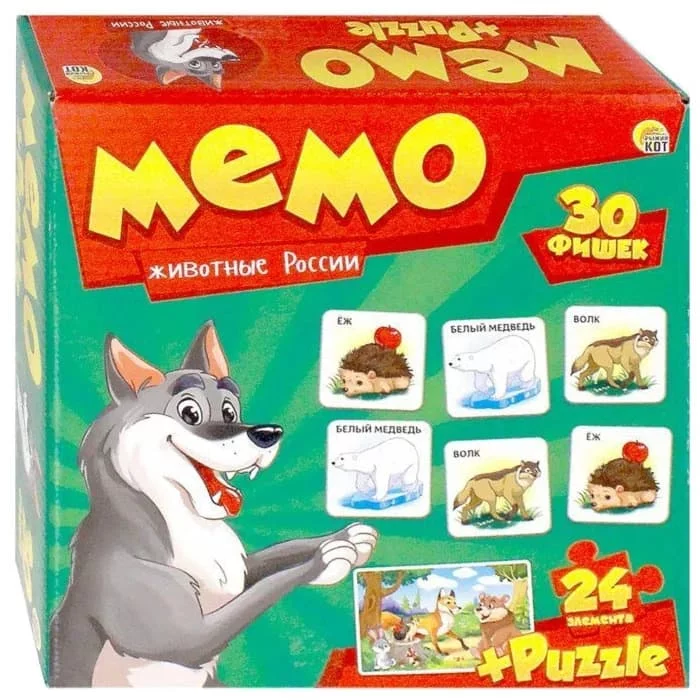 МЕМО (30 фишек) + ПАЗЛЫ (24 элемента). ЖИВОТНЫЕ РОССИИ (Арт. МП-0368) другой стандарт МП-0368