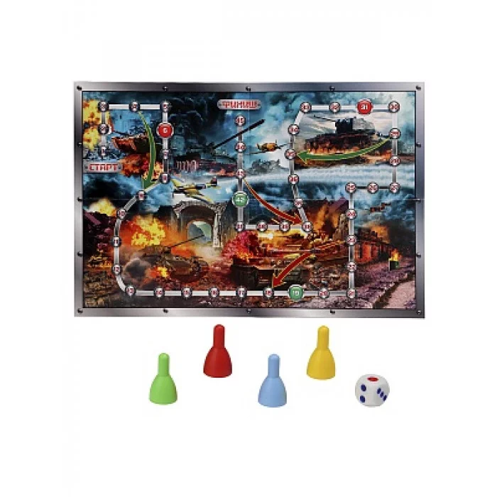 Что может быть интересней, чем игры с друзьями? «В МИРЕ ТАНКОВ — увлекательная настольная игра с невероятными приключениями для весёлого времяпровождения! А лёгкие правила игры осилят даже самые маленькие игроки! В наборе: игровое поле 42х28,5 см, 4 фишки, кубик, инструкция.