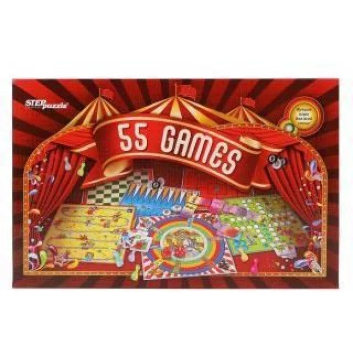 В наборе собраны 55 лучших игр со всего мира. Здесь Вы найдете: мемо и карточные игры, шахматы и шашки, нарды, различные игры-бродилки и игры с кубиками. Все игры входящие в комплект очень разнообразны. Будут интересны как детям, так и их родителям. Игровые поля (двусторонние) 3 шт.,Шашки 32 шт.,Наклейки на шашки (шахматы) 32 шт. Кубики 2 шт.,Фишки четырех цветов по 8 шт.каждого цвета,Карточки домино 28 шт.Парные карточки 30 шт.,Правила 1 шт.