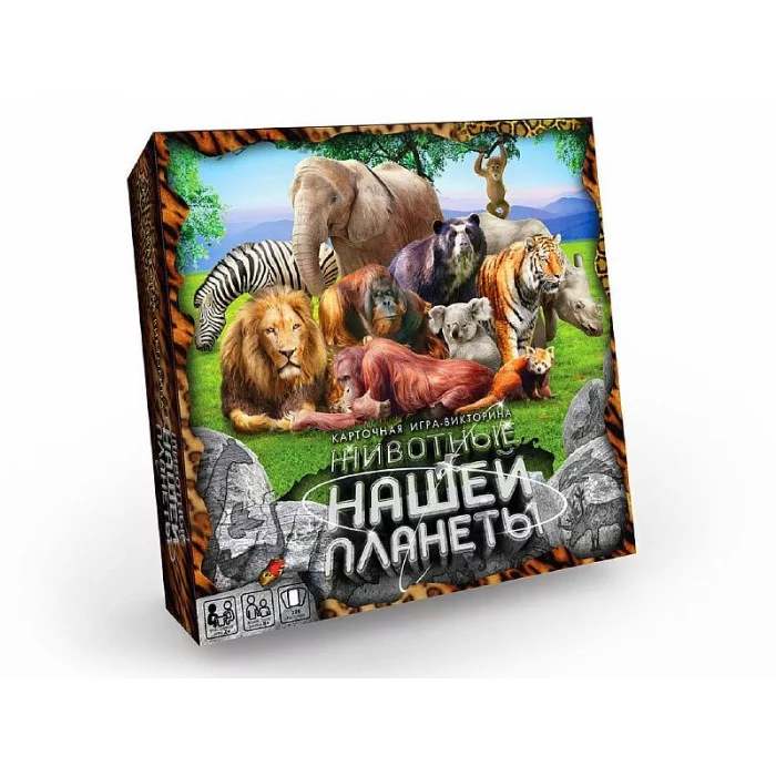 * Играя в настольную игру "Животные нашей планеты", участники, растворяясь в веселом азарте, получат навсегда бесценный багаж знаний в области зоологии и географии. Ознакомьтесь с удивительными фактами и окунитесь в море новых знаний о животных, живущих на нашей планете. Комплектация: игровые карточки – 224 шт., карта животного мира, картинка-пазл, правила игры.