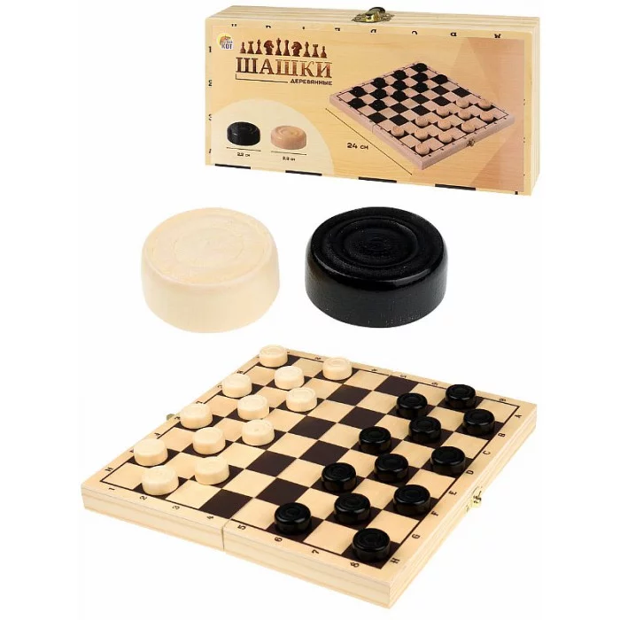Шашки – это настольная игра для двух игроков, которая позволяет развивать логическое мышление и стратегическое мышление. В комплекте с игрой имеется игровое поле, состоящее из 64 клеток, на которых располагаются 12 белых и 12 черных фишек. Цель игры заключается в том, чтобы перебить или ограничить передвижение фишек противника. Правила игры довольно просты, и она подходит для игры как детям, так и взрослым. Шашки – отличный способ провести время в уютной семейной атмосфере или с друзьями, а также позволяет развивать такие навыки, как стратегическое мышление, прогнозирование ходов и тактическое планирование. Компактный размер и простота игры делают ее идеальным выбором для путешествий или игры на пикнике. Шашки – это классическая настольная игра, которая может принести множество часов увлекательного времяпрепровождения и приносить радость игрокам всех возрастов. Размер: 240х120х40 мм. Материал: дерево. Упаковка: слюда.
