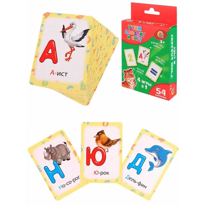 «Учим алфавит и цифры» - обучающая настольная игра. Благодаря ей ребёнок поймёт, как выглядят числа и буквы, познакомится с простыми математическими действиями, узнает, что такое слоги и как слова на них делятся, увеличит словарный запас и улучшит навыки чтения.