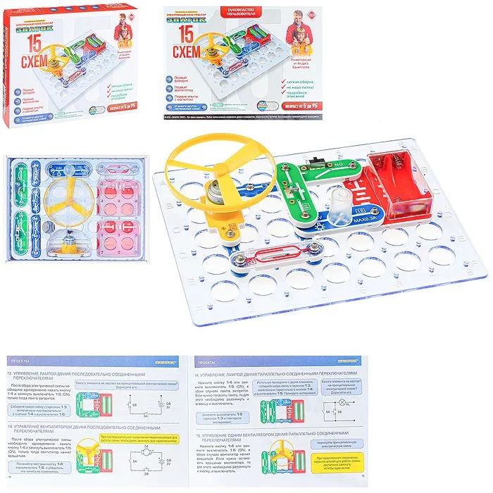 * 15 различных схем: фонарик, вентилятор, опыты с магнитом;