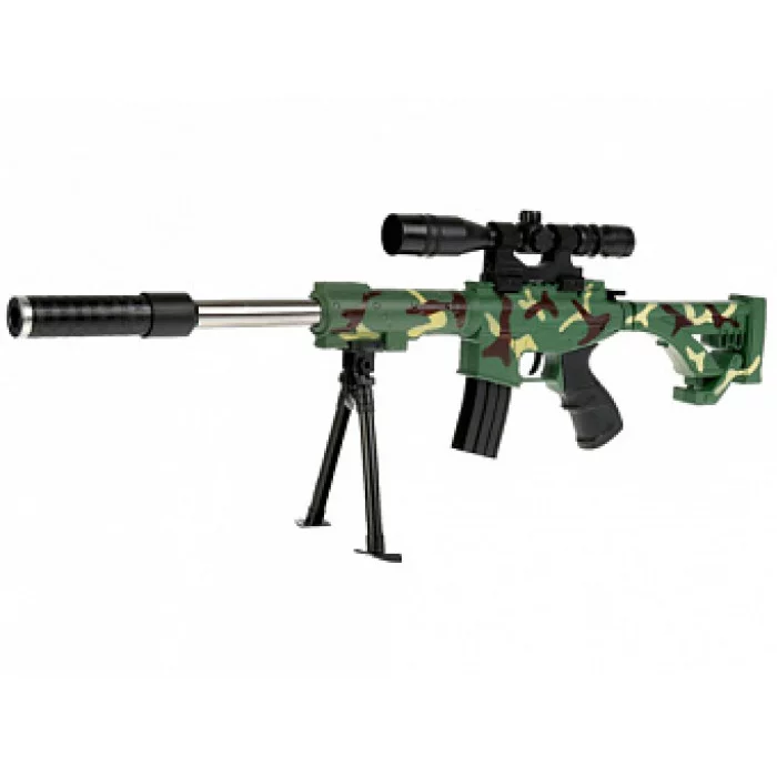 295946 Автомат (п) с лазер. прицелом, глушителем, на подставке, съемн. магазин в пак.