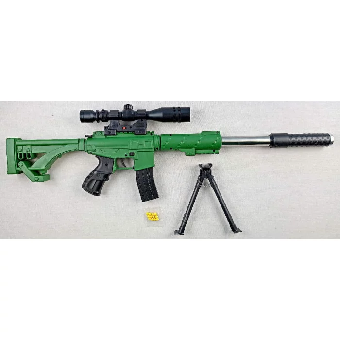 Автомат 68 см зеленый с лазерным прицелом, с двуногой и пульками (10 шт) M2019-2 с 6 лет