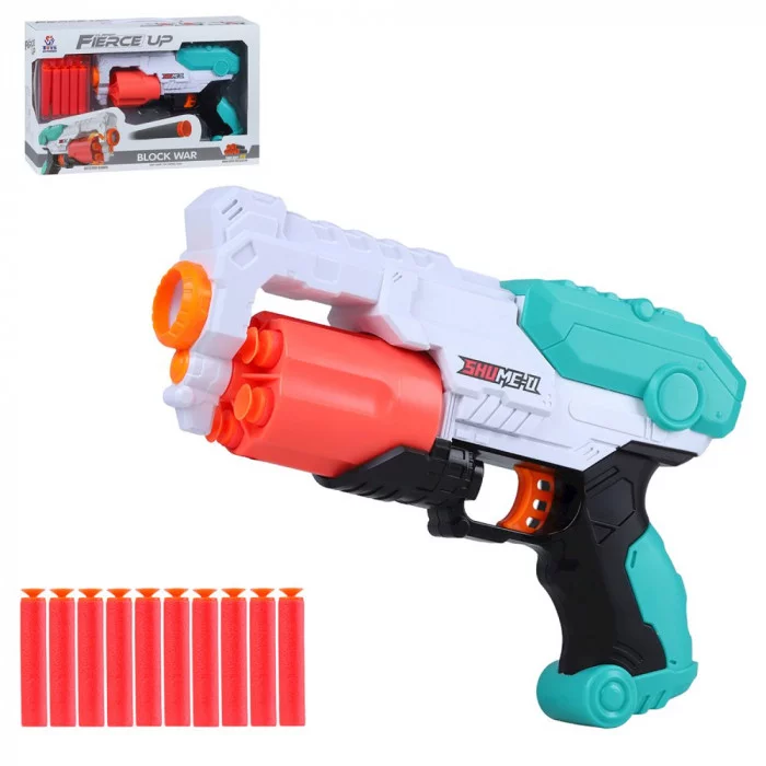 Бластер с 10 пулями станет не только развлечением, но и будет способствовать развитию воображения, концентрации внимания и меткости.