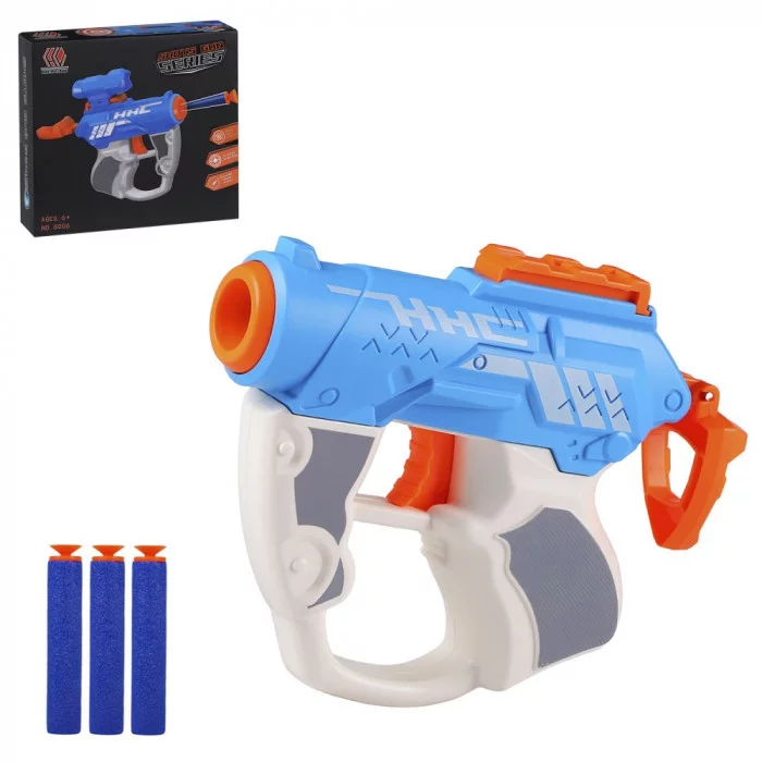 Бластер с мягкими пулями,3 пули в компл., ручной затвор, цвет синий, в/к 18*4,5*16,5см JB0211125