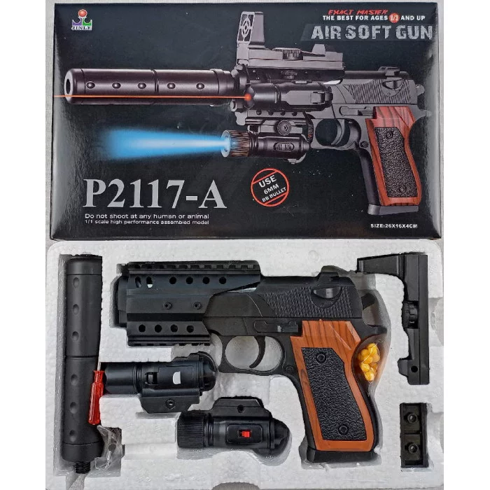 Пистолет (длина 32см) с лазерным прицелом и фонариком в кор. P2117-A