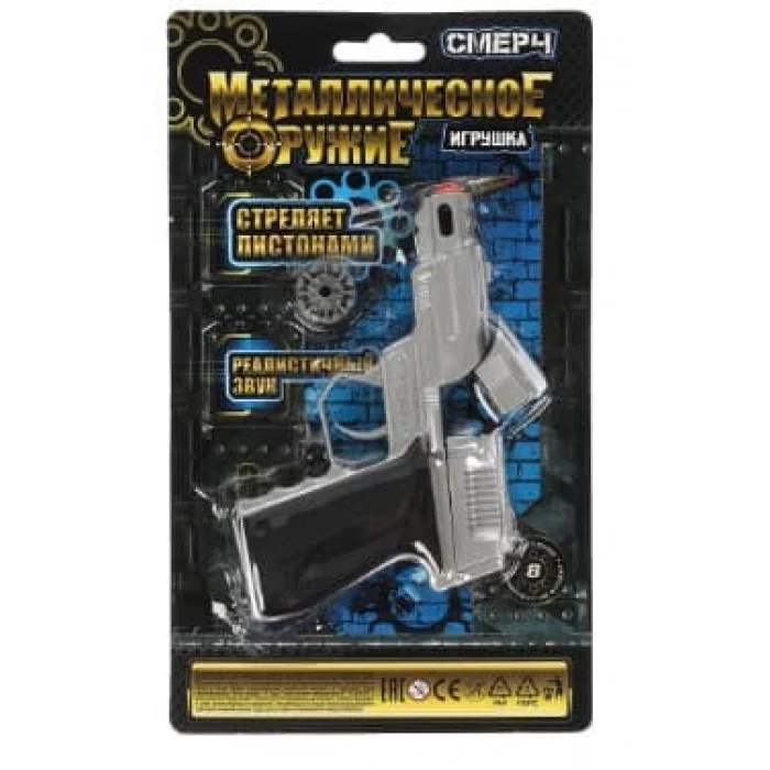 Пистолет для стрельбы пистонами 8 зарядов, металл, блист. 89203-S902ВN-R
