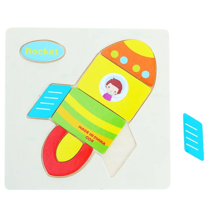 Пазл-вкладыш на деревянной основании" Ракета", 7 элементов 1101921