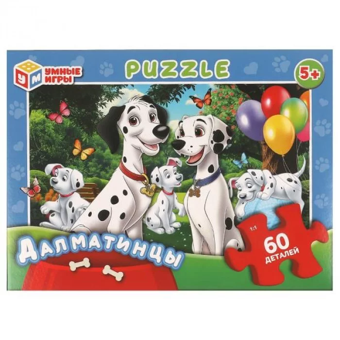 Далматинцы. Пазл классический в коробке. 60 деталей. 190х141х35 мм. Умные игры 4660254456143